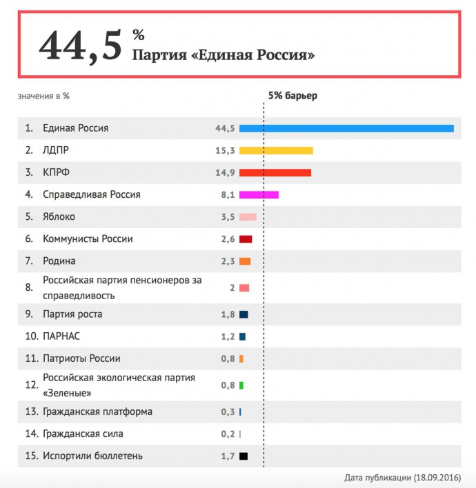 При этом речь идет только о результатах голосования по федеральному округу. По одномандатным округам данные собираются отдельно.