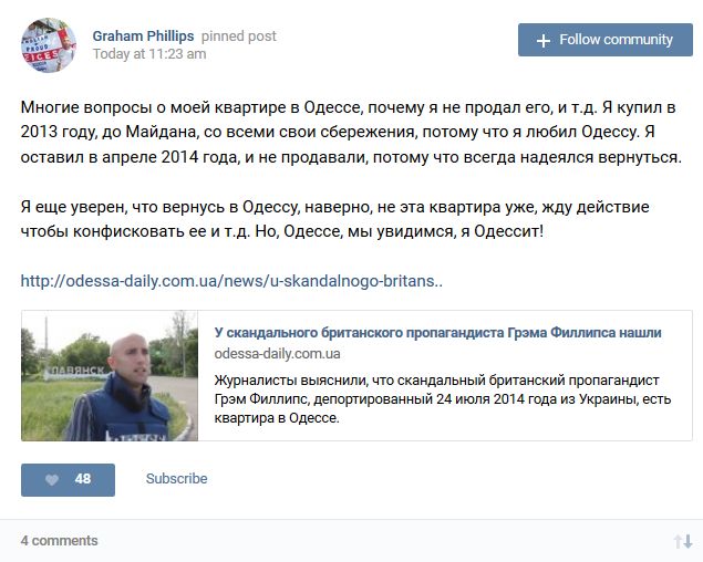 Как известно, Грэм Уильям Филлипс (Graham William Phillips) – британец, журналистские материалы которого обрели огласку во время Евромайдана и конфликта на востоке Украины. До марта 2015 года он работал на российские телеканалы Russia Today и "Звезда".