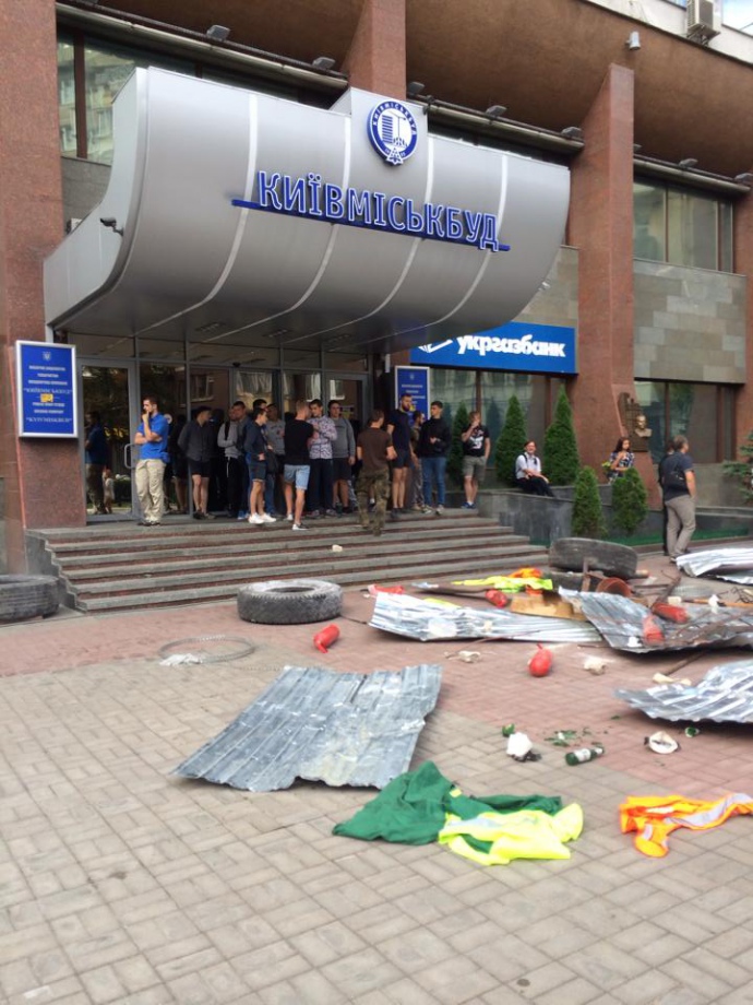 В сообщении напомнили, что около 8:30 к зданию "Киевгорстроя" пришли примерно 50 человек с автомобильными шинами, разбросали мусор и заблокировали вход в учреждение.