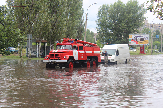 Наиболее сложная ситуация сложилась на улице 30 лет Победы в районе транспортного кольца на улице Елены Телиги. Часть водителей, которые на свой страх и риск пытались преодолеть автомобилями этот участок в брод, в конце концов, залив двигатели, остановились.