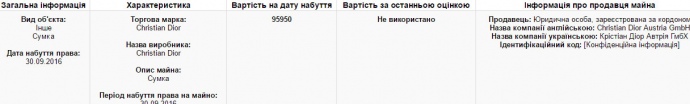 Также он купил 30 сентября сумку Christian Dior 95 950 гривен.