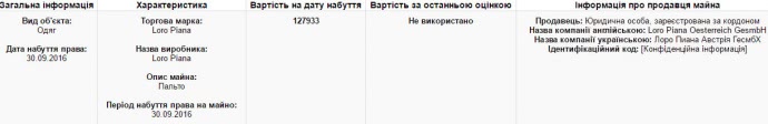 Кроме того, 30 сентября Котвицкий купил пальто Loro Piana за 127 933 гривен.