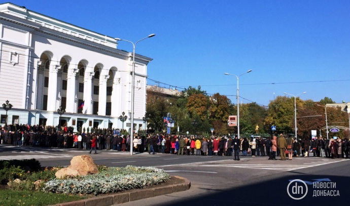 Прощание проходит в здании театра оперы и балета имени Героя Украины Анатолия Соловьяненко. Возле театра скопилась очередь примерно из 3 тысяч человек. Позднее людей стало больше - до 6 тысяч человек. В очереди стоят как люди пожилого возраста, так и молодежь. Из-за столпотворения территория вокруг театра оцеплена боевиками "ДНР", пишут Новости Донбасса.