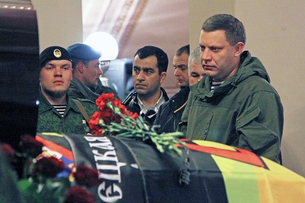 На похоронах был лидер боевиков Александр Захарченко, который, по сообщению, соцсетей, пообещал взять Славянск и поставить на Карачуне памятник "Мотороле".