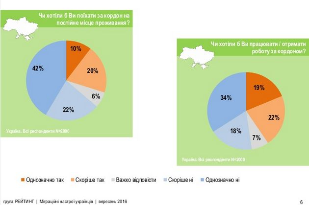 При этом две трети опрошенных, имея постоянную работу за границей, скорее вернулись бы в Украину через какое-то время, 15% – скорее не вернулись бы.