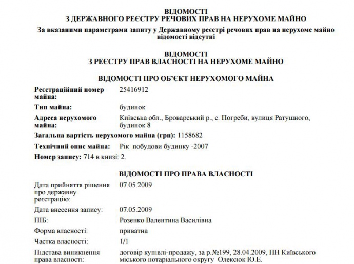 Как известно, 6 августа этого года издание "Страна" опубликовало информацию о доме Розенко в поселке Погребы (неподалеку от массива Троещина в Киеве), а также акт покупки этого дома Валентиной Розенко в мае 2009 года.