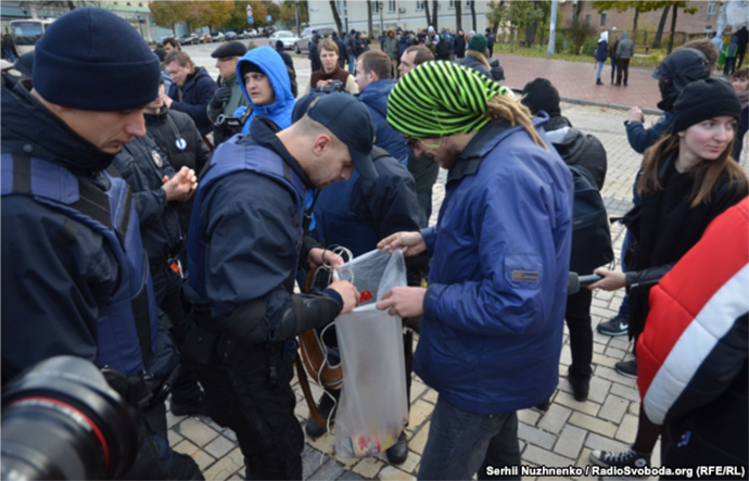 Как сообщает корреспондент Радио Свобода, потасовка между активистами относительно легализации курения конопли возникла после того, как у одного из противников легализации нашли муляж гранаты и несколько дымовых шашек.