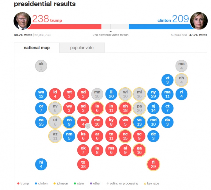 Так, за него отдали голоса 238 выборщиков при необходимых 270.