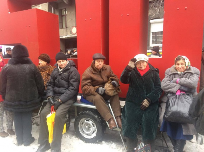 Преимущественно это люди пожилого возраста, пенсионеры. Перед этим, их делили на колонны возле Майдана Незалежности.