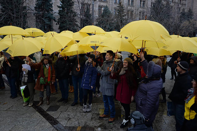 "В рамках этого мероприятия люди во всем мире одновременно пишут письма в защиту лиц, чьи права нарушены, и в знак солидарности с ними. В этом году юбилейный Марафон начнется акцией-флешмобом у главного отделения почты на Майдане Независимости - мы откроем 50 желтых зонтиков как символ надежды и защиты, которые несут в себе письма Марафона", - отметили в AI.