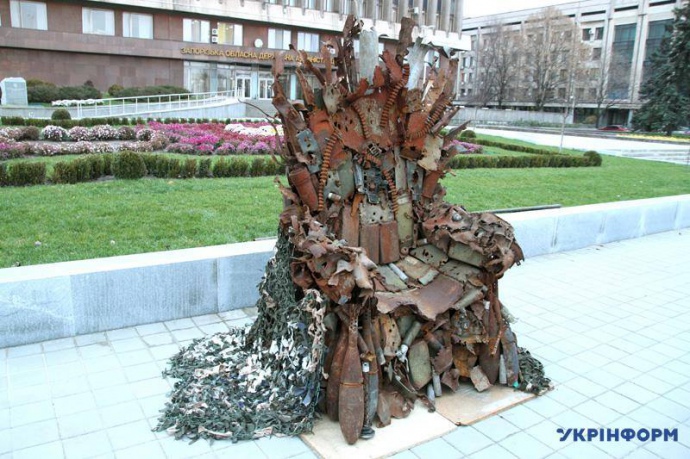 Копию железного трона из популярного сериала "Игра престолов", созданную в зоне АТО из осколков разорванных снарядов и брони, продали на аукционе за 150 тысяч гривен.
