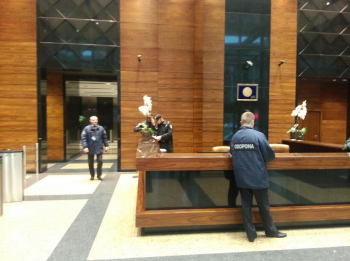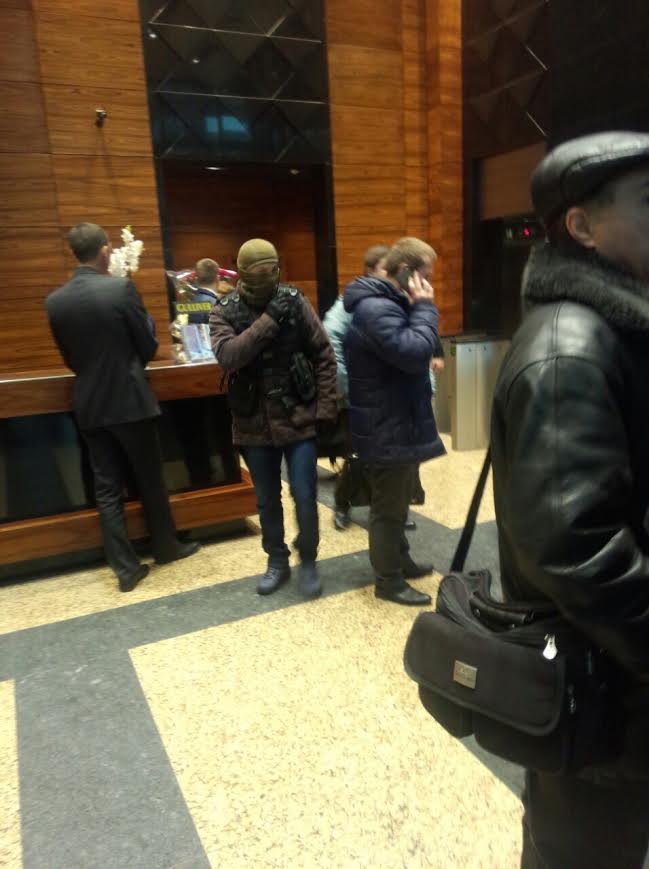Так, по свидетельству очевидцев, около 9:00 входы и выходы из здания блокировали люди в черном с автоматами. Они контролировали вход и выход сотрудников здания.