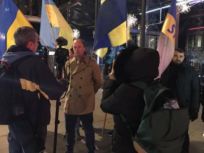 Активисты общественного движения "Лондон Евромайдан" пикетировали помещение олигарха Рината Ахметова в Лондоне.