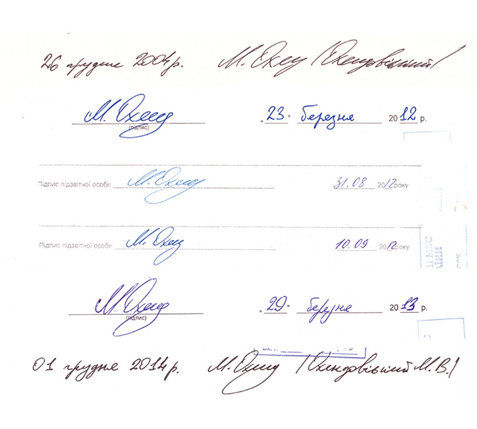 НАБУ обнародовало результативную часть почерковедческой экспертизы "амбарной книги" Партии регионов с подписями, которые принадлежат председателю Центральной избирательной комиссии Михаилу Охендовскому.