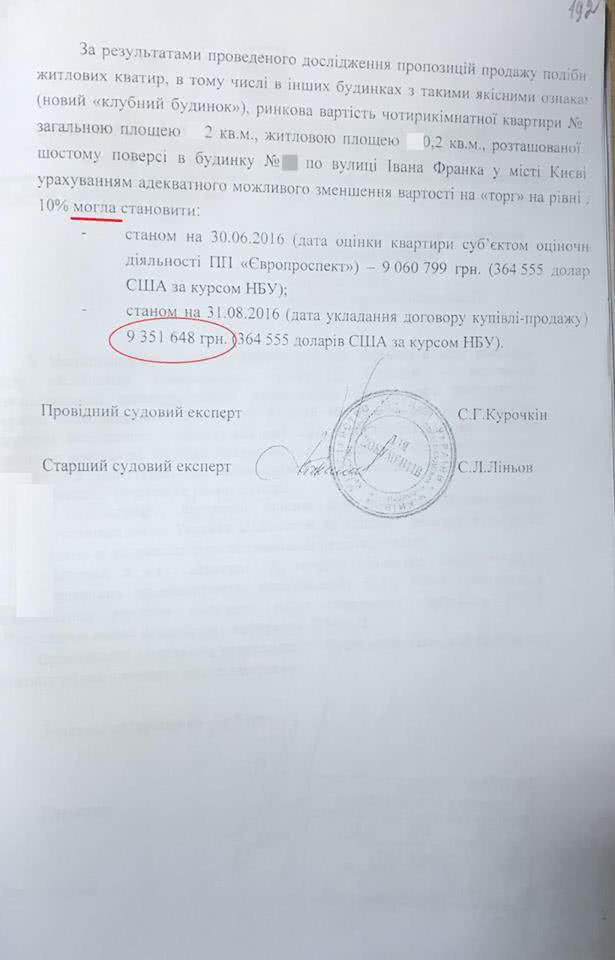 В то же время адвокат отметил, что НАПК установила наличие состава административного правонарушения на основании единственного документа - справки о рыночной стоимости квартиры ведущего эксперта КНИИСЭ Курочкина С.Г. и Линева С.Л.