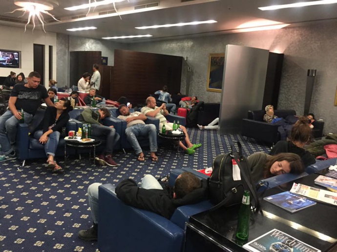 "Люди в отчаянии. На возмущенную толпу бросились полицейские с дубинками, кто-то крикнул ИГИЛ Бомба, народ в панике разбежался. Царит истерия и паника, вай-фай в аэропорту отсутствует, есть только в зоне бизнес лаунжа. Что делать?" – сообщала Лукьянова ранее.