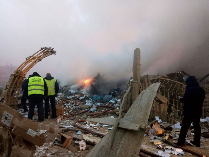 "Он заходил на посадку с востока на запад и шасси задело здание. При падении он протаранил около 30 жилых домов в поселке", - пояснили в "Манасе".