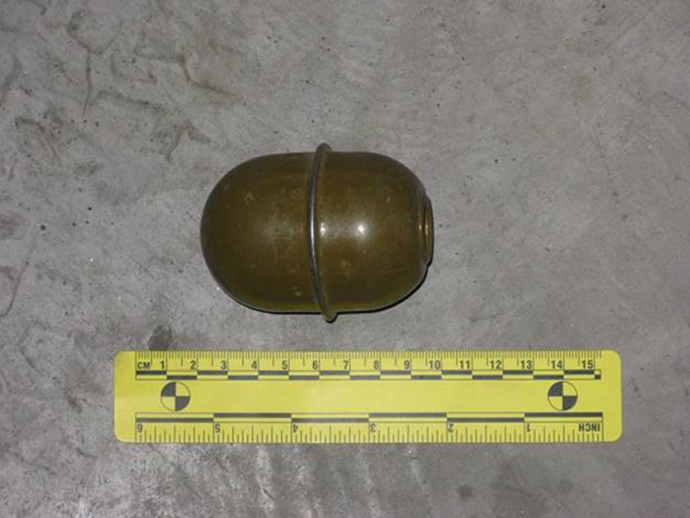 При проведении проверки правоохранители обнаружили гранату "РГД-5" без запала, светло-шумовую ракету, одну подствольного гранату для автомата Калашникова и две дымовые шашки.