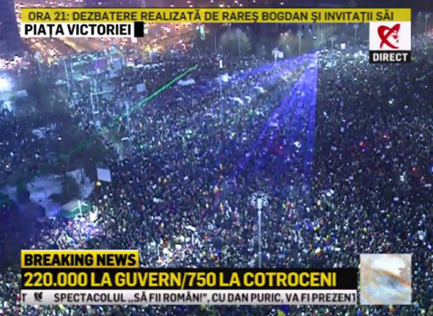 "Протестующие недовольны, несмотря на отмену правительственного постановления, раздаются призывы к "левому крылу" правительства уйти в отставку ... Огромные толпы собрались на площади Виктория в Бухаресте - уже шестой день подряд (с начала протестов)", - говорится в сообщении.