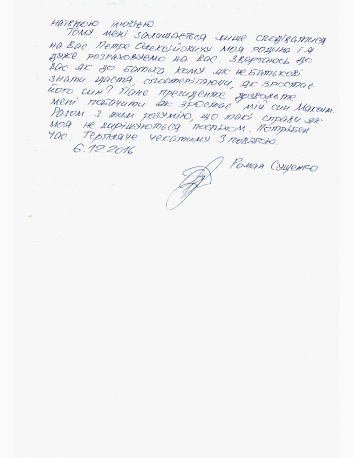 Цеголко также отметил, что Порошенко встретился с женой Сущенко Анжелой и детьми Юлией и Максимом.