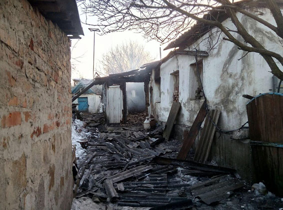 А по улице Колосова вследствие прямого попадания полностью сгорел частный дом.
