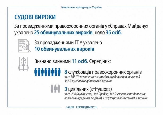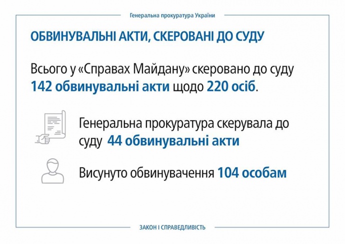 Генпрокурор отметил, что обвинительные акты в отношении 220 человек по делам Майдана направлены в суд.
