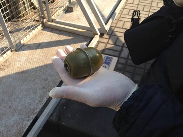 Около 11:30 полицейские заметили подозрительного молодого человека. Когда его попытались обыскать, он решил убежать, но его задержали и обнаружили в кармане гранату РГД-5 с запалом. Выяснилось, что опасный предмет переносил 19-летний киевлянин.