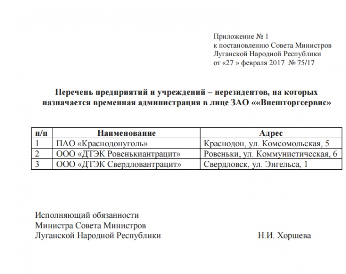 В документе ОРЛО указаны три компании. Все они принадлежат бизнесмену Ринату Ахметову:ПАО "Краснодонуголь", ООО "ДТЭКРовенькиантрацит", ООО "ДТЭКСвердловантрацит".