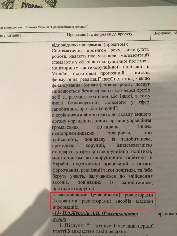 Эта поправка обязывает работников СМИ подавать электронные декларации.