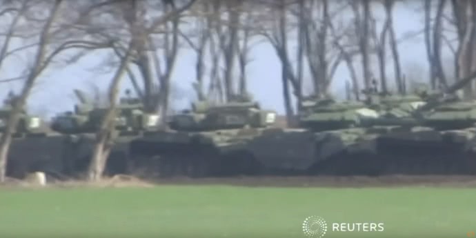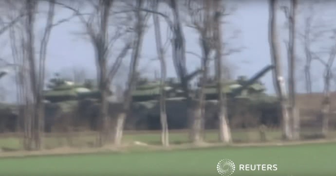 Агентство Reuters показало видео десятков российских танков вблизи украинской границы.