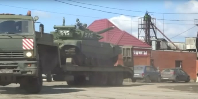 В описании указывается, что свидетель Reuters видел десятки современных танков, прибывающих на железнодорожный вокзал в Покровском на юге Ростовской области.