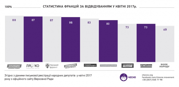 В "Чесно" отмечают, что даже 100% -го прогульщика отозвать невозможно. Единственное, чем можно наказать "неприкасаемых", – лишить части зарплаты. По поручению спикера, с сентября 2016 года прогульщиков также время от времени публикуют в газете "Голос Украины".