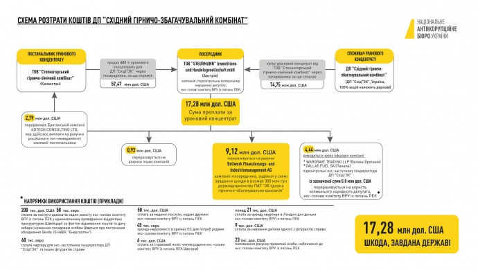 "Информация, полученная от компетентных органов других государств, помогла детективам НАБУ не только исследовать все детали коррупционной схемы, но и установить, на что именно лица, подозреваемые в нанесении ущерба " ВостГОК", тратили украденные у государства средства", – отмечают в ведомстве.