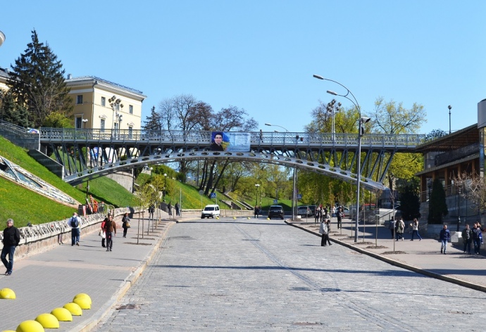 На мосту через улицу Институтская в Киеве вывесили памятный баннер, посвященный убитому три года назад депутату Горловского горсовета Владимиру Рыбаку.