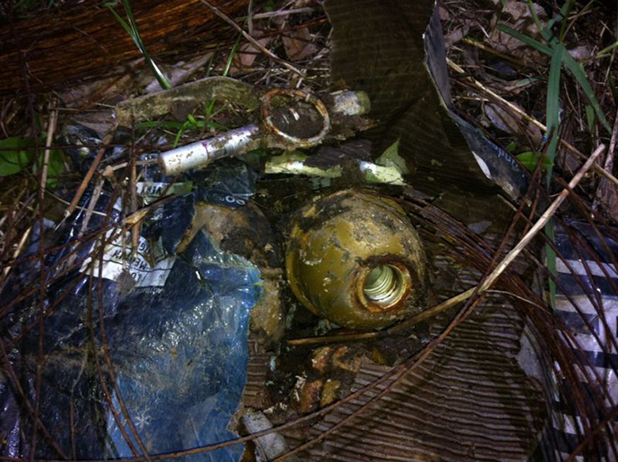 На место происшествия мгновенно выехали правоохранители и оцепили территорию. По предварительной информации, в коробке находится 7 гранат РГД-5 и 7 гранат Ф-1. У боевых боеприпасов выкручены запалы, однако они находятся вместе в коробке.