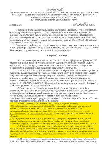 Управление информационной деятельности и коммуникаций с общественностью Николаевской облгосадминистрации заключило договор на 2 млн.192 тыс.грн с "Южноукраинским медиа холдингом" на продвижение в соцсетях и интернет-ресурсах.