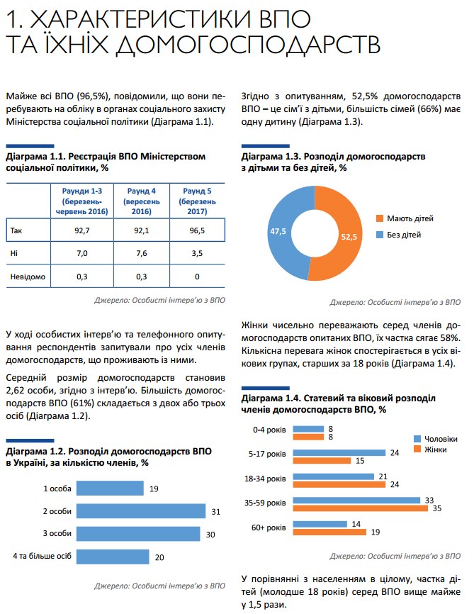 Среди них больше женщин чем мужчин. Большинство домохозяйств ВПЛ (61%) состоит из двух или трех человек.