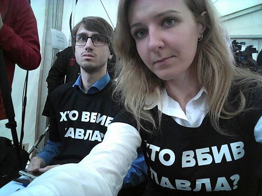 Ряд журналистов пришли на пресс-конференцию в футболках с надписью "Кто убил Павла?"