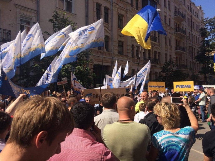 В общем участников акции около 200 человек. Они требуют зарегистрировать партию Саакашвили и отменить регистрацию одноименной фейковой партии.