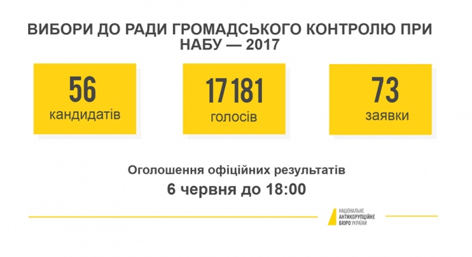 По информации антикоррупционеров, окончательные результаты выборов Совета общественного контроля при НАБУ будут обнародованы на официальном сайте бюро до 18:00 6 июня, в день, когда истекают полномочия действующего СОК.