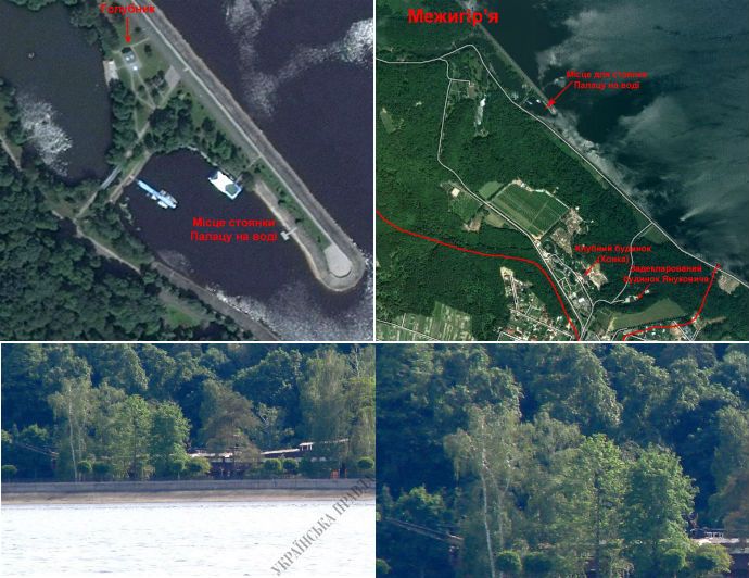 В резиденції Віктора Януковича поповнення: у "Межигір'ї" з'явився унікальний палац на воді. Його довжина близько 50 метрів. Цей ексклюзивний корабель має в собі приватний кабінет та залу для прийомів, яка завершується естрадою.