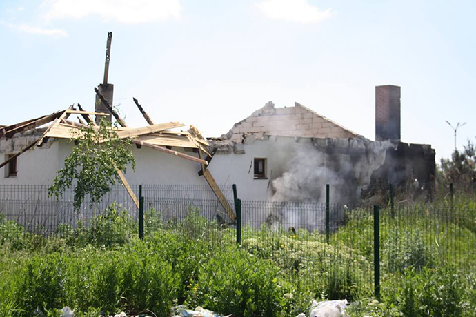 В результате обстрела боевиками поселка Бердянское разрушена крыша и потолок в одном из сооружений по улице Морской.