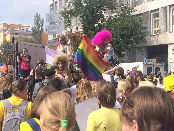 Вместе с тем, как сообщает корреспондент "Украинской правды", к 10 утра возле университета Тараса Шевченко в Киеве собралось несколько тысяч человек в Киевпрайд 2017.
