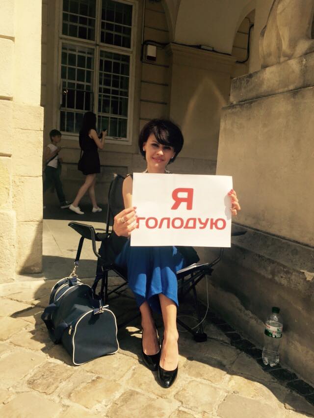 Начальник отдела информационной политики Львовской облгосадминистрации Ольга Березюк объявила голодовку под стенами Львовского городского совета.