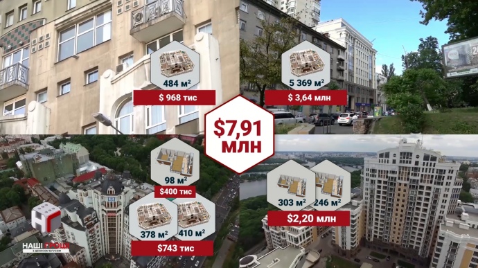 - две квартиры на ул. Грушевского 9а, общей площадью более 500 кв. м и стоимостью около 2200000 долларов;