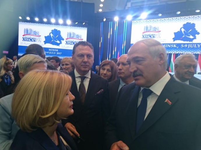 По ее словам, об этом она узнала во время "короткого разговора" с самим Лукашенко на полях Парламентской ассамблеи ОБСЕ.