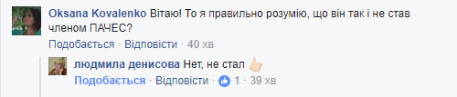 На уточнение "Украинской правды", не стал ли Шперов членом ПАЧЭС, Денисова ответила: "Нет, не стал".