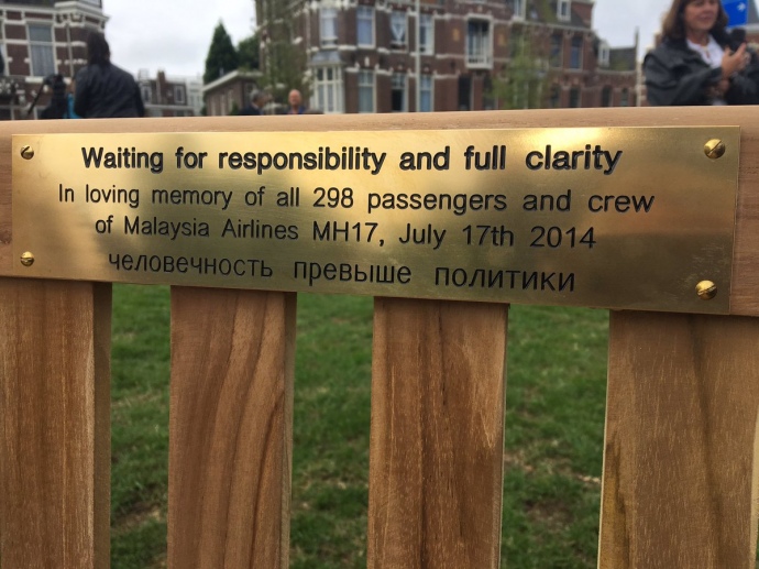 В Гааге семьи жертв MH17 установили скамейку перед посольством РФ: ждут ответов
