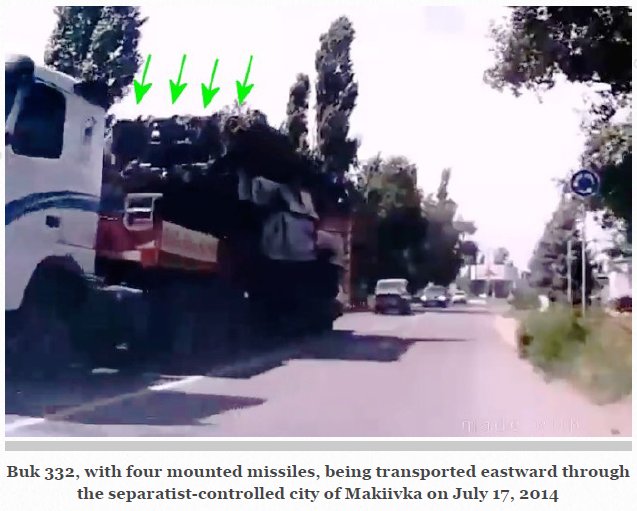 Позже, 17 июля 2014 года, в день падения малайзийского "Боинга", свидетели видели, как эту ракетную установку перевозили по оккупированной пророссийскими боевиками части Украины, а именно к востоку от Донецка.