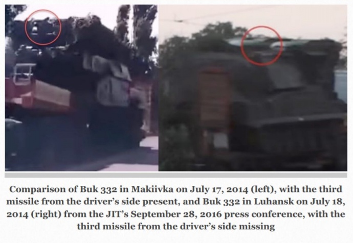 По данным Bellingcat, 18 июля 2014 "Бук" уже видели восточнее - его транспортировали по оккупированной территории Луганской области. При этом в установке не хватало одной ракеты.